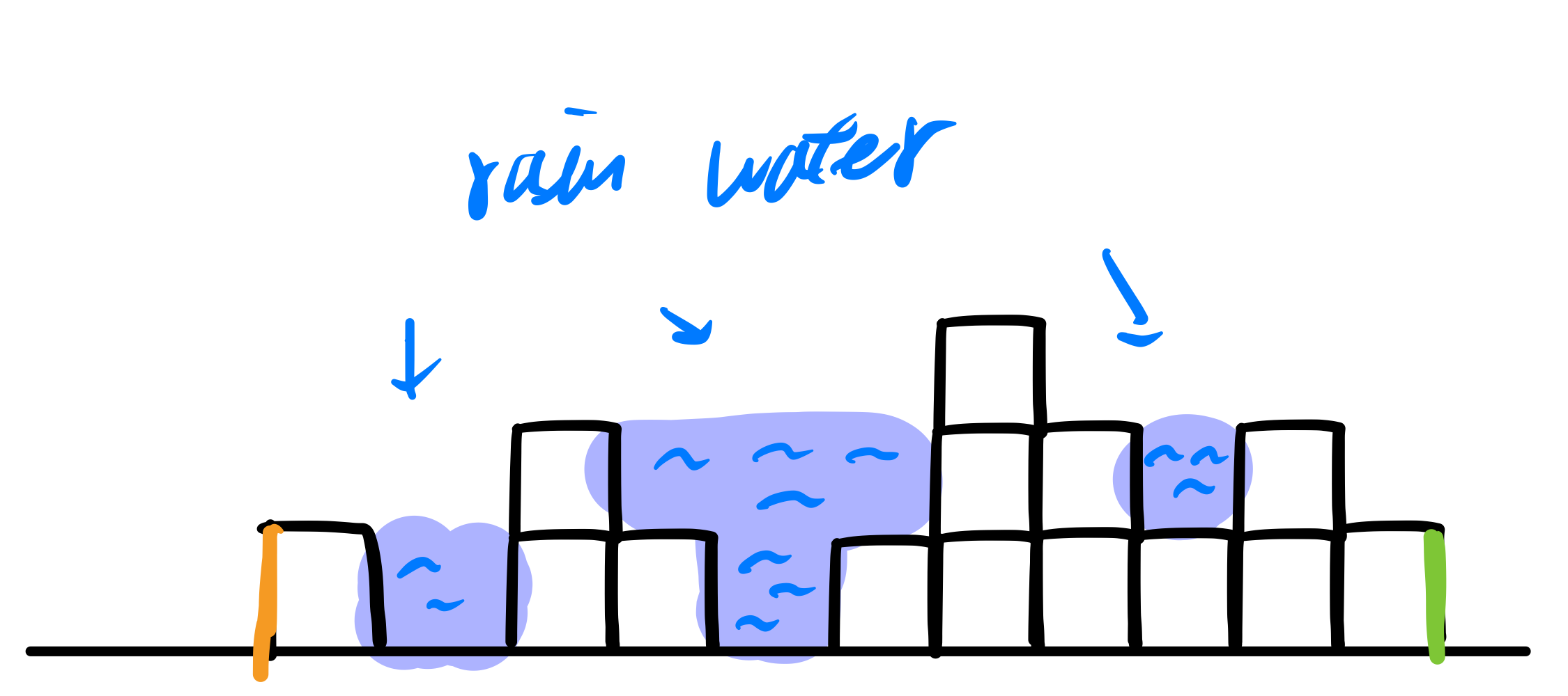 - 각각 왼쪽 끝과 오른쪽 끝에서 포인터가 이동하면서 높이를 스캔합니다.