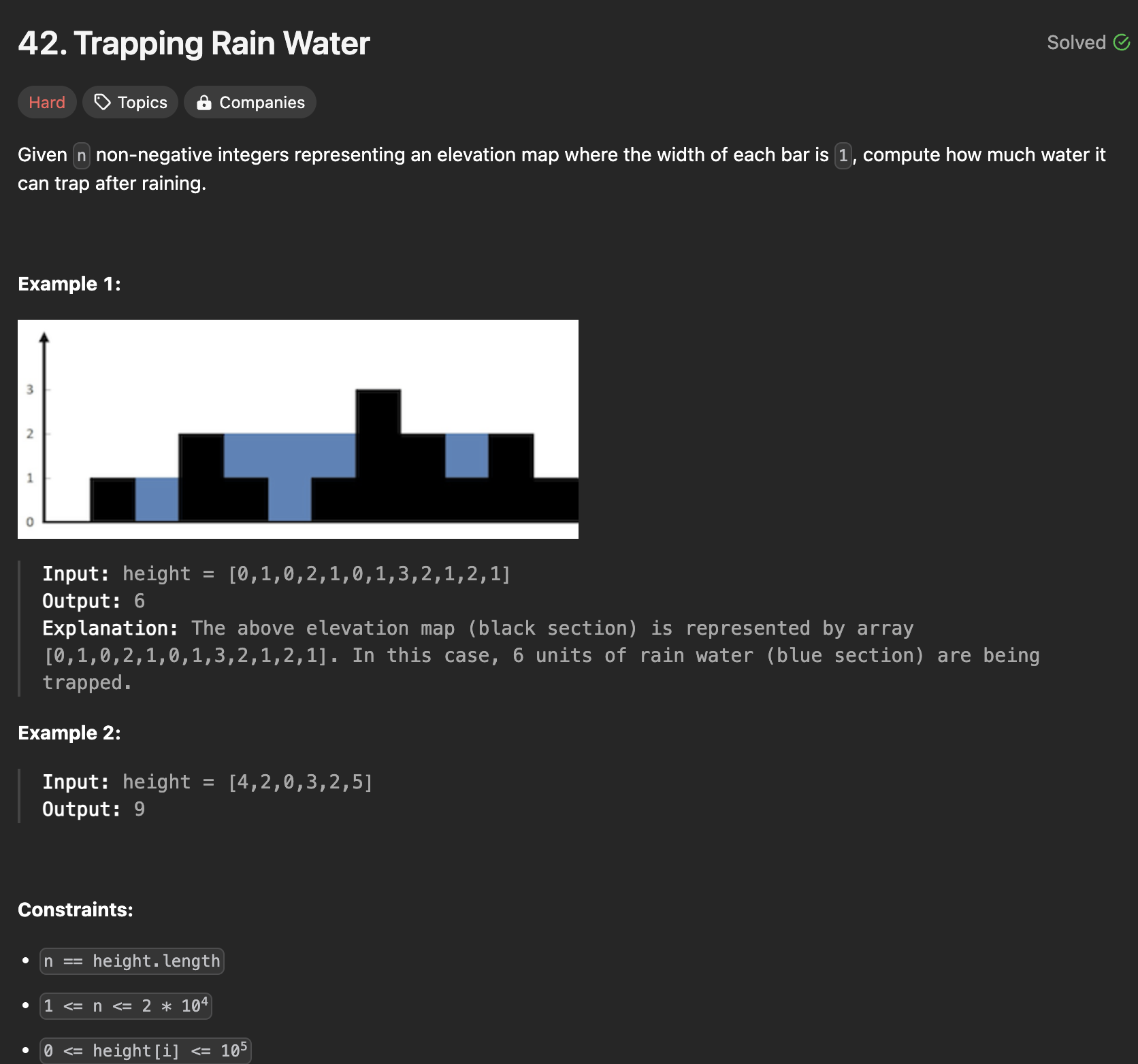 오늘은 리트코드(leetcode) 42번 문제 trapping rain water에 관해 풀어보겠습니다.