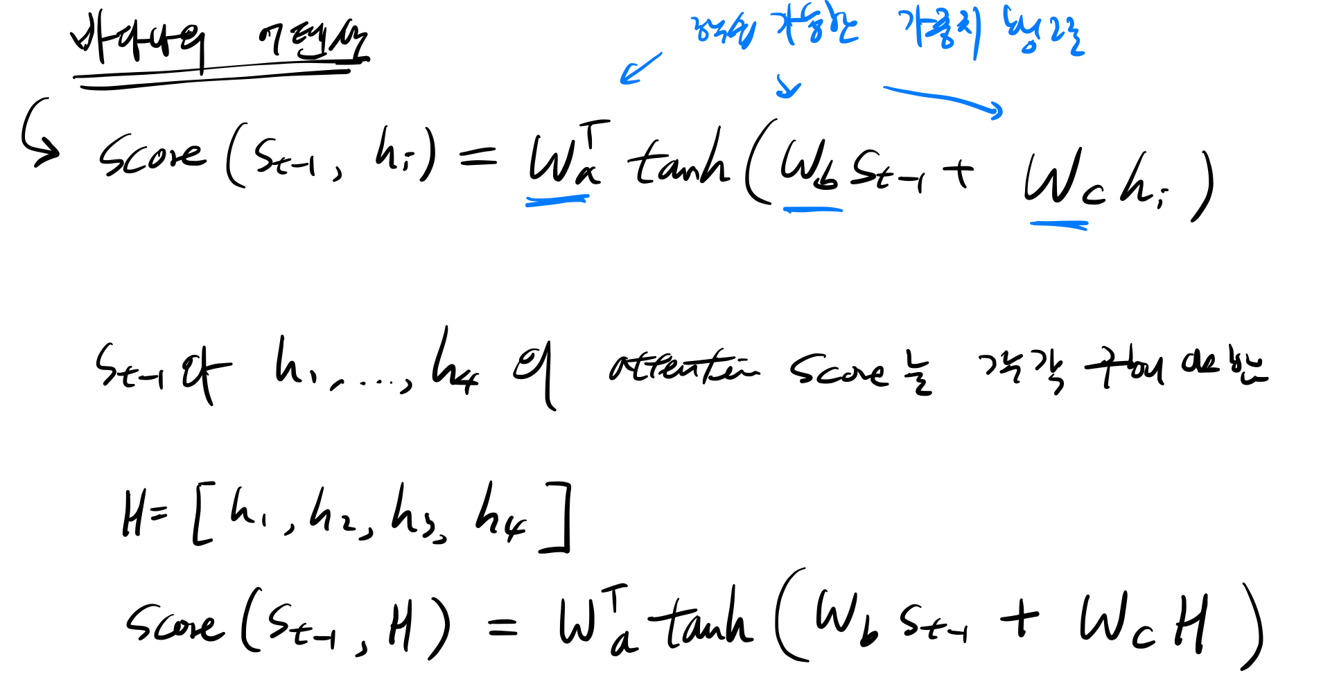 바다나우 어텐션 값을 구하기 위해서는 해야할 일은 다음과 같다.