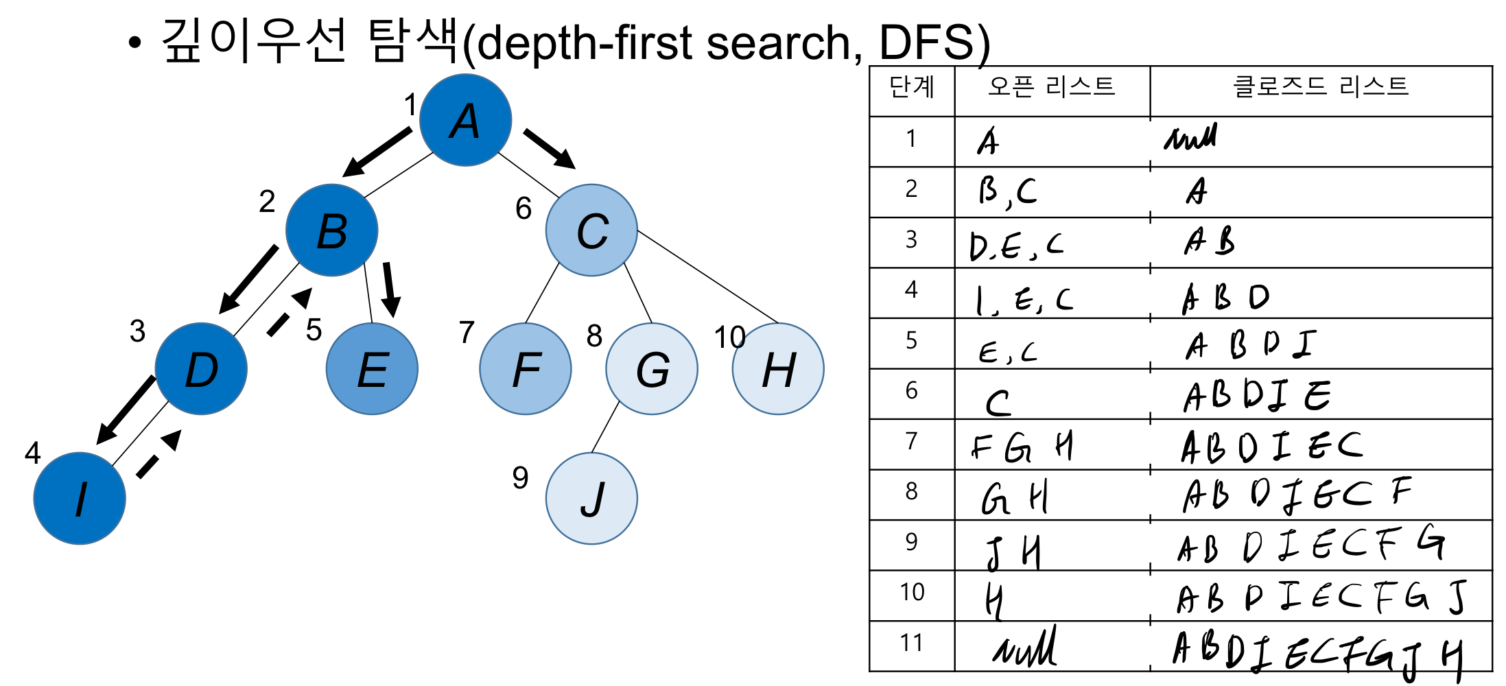 - 효율적인 순서로 탐색해야함 -> 깊이우선탐색(DFS), 너비우선탐색(BFS) 활용