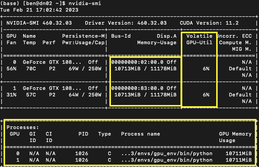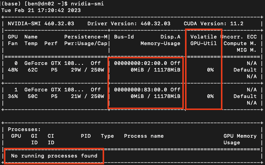 다음으로는 nvidia-smi를 통해 gpu가 가동중인지 확인해봅시다.